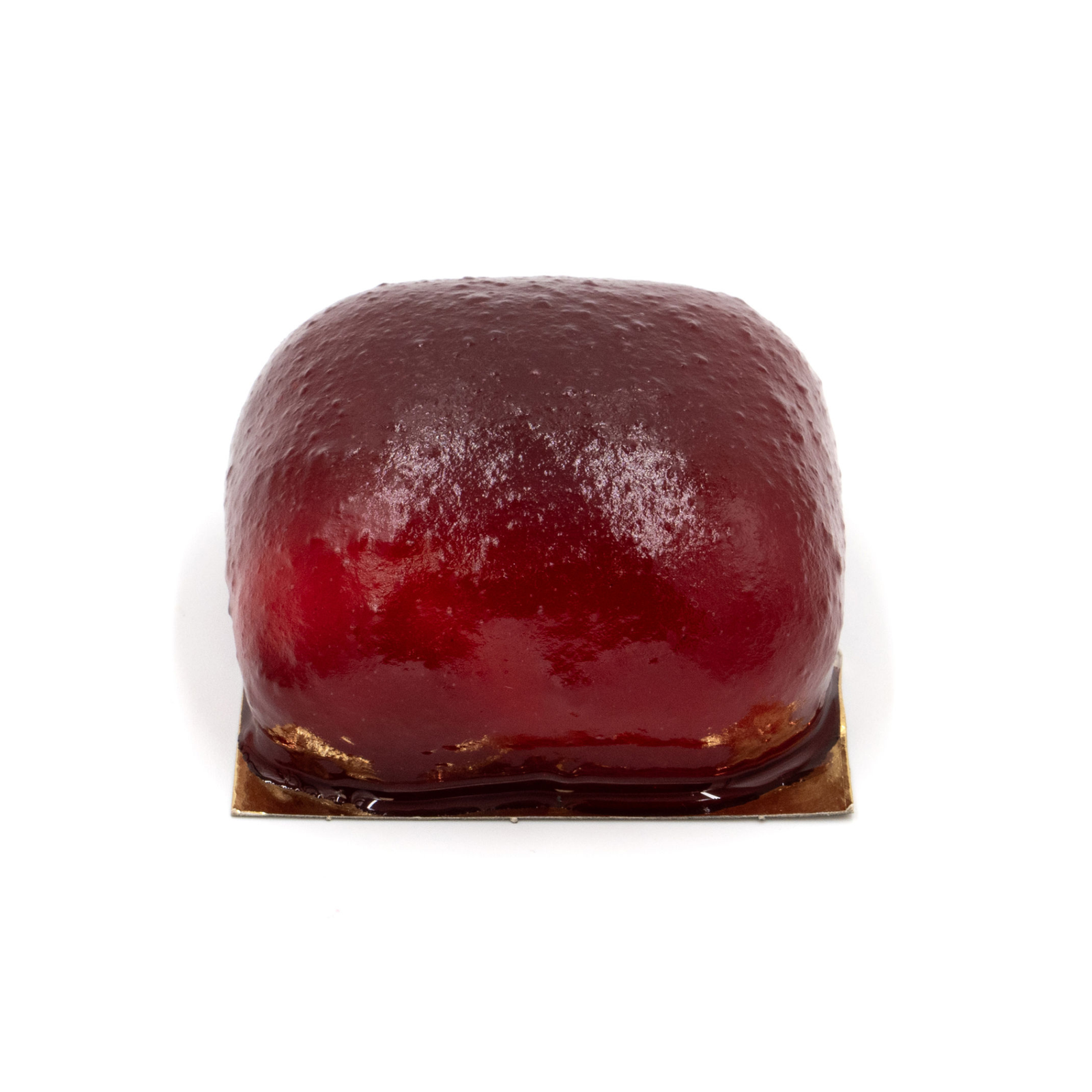 Mousse pastries with caramel, apple filling and red berry cream, made with cream, mascarpone cheese, chocolate and fruit purée. The sweetness of caramel blends with fresh berries and a light apple tartness, while the aroma of buttery pastry with fruity notes entices even before the first bite. Colourful, smooth pastries with vibrant berry accents catch the eye and invite you to indulge. The soft, creamy texture with a light sponge base yields effortlessly to every bite, accompanied by a gentle cut and the subtle glide of the glaze.